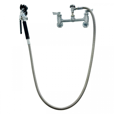 8" Adjustable Wall Utility Spray Unit with Ceramic Cartridges, Lever Handles, Swivel Vacuum Breaker, 60" Hose